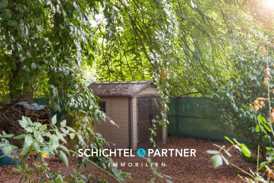 Vom Wohnzimmer aus gelangen Sie auf die Terrasse mit großer Markise. Von dort aus geht es weiter in den schönen Garten: Auf dem ca. 1.708 m² großen Grundstück gibt es zusätzlich zwei Gartenhäuser für Grill und Gartengeräte, einen Carport und eine große Doppelgarage. Der Garten verfügt über einen einzigartigen Baumbestand, ist schön angelegt und lädt zum Verweilen ein.