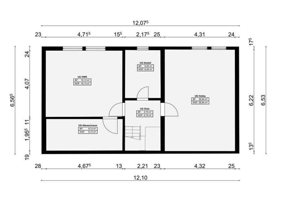 Der großzügige, helle und beheizte Keller erweitert die Nutzfläche deutlich. Neben klassischen Bereichen wie Hauswirtschaftsraum und Abstellräumen bietet er ausreichend Platz für ein Homeoffice, Fitness oder einen Hobbyraum.