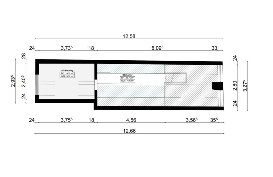 Die zwei Schlafzimmer überzeugen durch ihren guten Schnitt und angenehme Größen. Im Obergeschoss ergänzt ein begehbarer Kleiderschrank, direkt vom Schlafzimmer erreichbar, den Komfort auf durchdachte Weise. Ein weiteres Zimmer eignet sich ideal als Gäste-, Kinder- oder Arbeitsbereich. Der Grundriss zeigt sich flexibel und eröffnet die Möglichkeit, zusätzliche Zimmer zu schaffen.