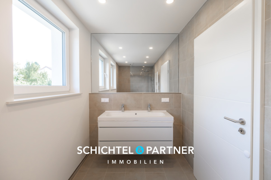 - Tageslichtbad mit begehbarer Dusche und Doppelwaschbecken