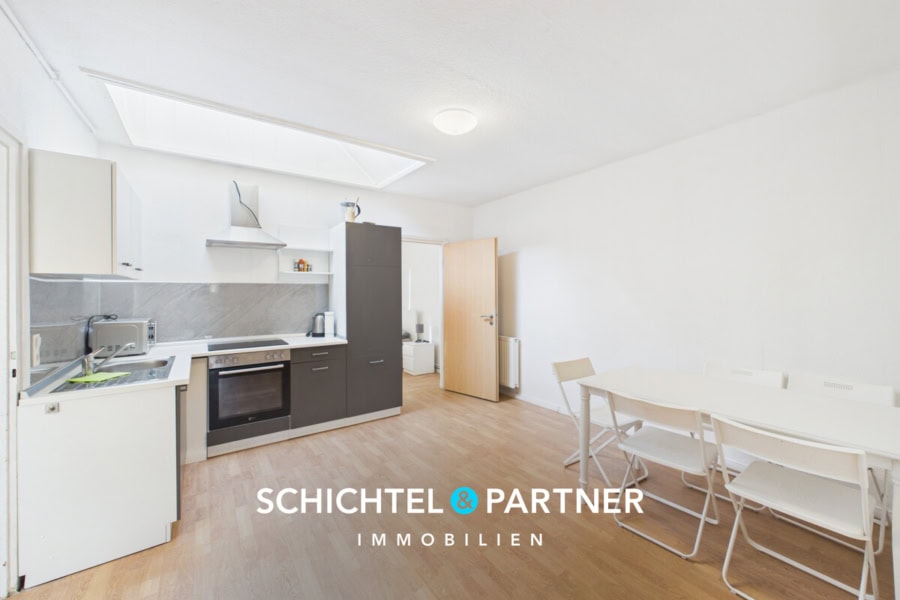 Die vorhandene Einbauküche, inklusive Elektrogeräten, ist bereits im Kaufpreis enthalten und fügt sich praktisch in das Raumkonzept ein. Funktional und alltagstauglich gestaltet, bietet sie kurze Wege und ausreichend Stauraum.