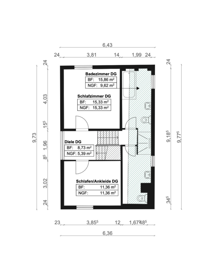 - Verschiedene Nutzungsmöglichkeiten der Zimmer als Ankleide oder Büro