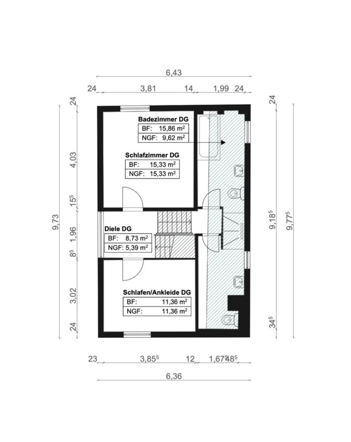- Verschiedene Nutzungsmöglichkeiten der Zimmer als Ankleide oder Büro