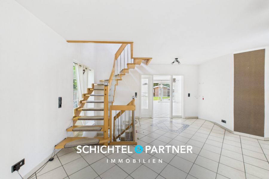Ein weiteres Highlight ist der Zugang zur sonnigen Terrasse in Südostausrichtung, die direkt in den großen Garten führt. Dieser ist liebevoll angelegt, pflegeleicht gestaltet und bietet vielfältige Nutzungsmöglichkeiten – vom Grillabend bis zum Spielplatz für Kinder oder entspannten Stunden im Grünen.