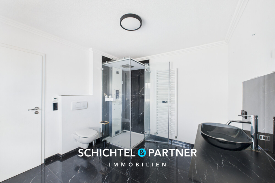 Die Küche grenzt direkt an den Wohnbereich und ist mit einer eleganten Einbauküche inklusive Marken-Elektrogeräten ausgestattet, die bereits im Kaufpreis enthalten ist. Ob gemeinsames Kochen mit Familie und Freunden oder der schnelle Kaffee am Morgen – hier treffen Funktionalität und Design aufeinander.