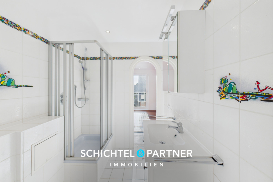 Das Highlight dieser Immobilie ist das luxuriöse Marmorvollbad mit Rainshower-Dusche, Whirlpoolwanne, Doppelwaschtisch und ägyptischer Handbemalung. Diese einzigartige Wellnessoase lässt sowohl Sie als auch Ihre Gäste staunen und verleiht dem Objekt einen unsagbaren Wert.