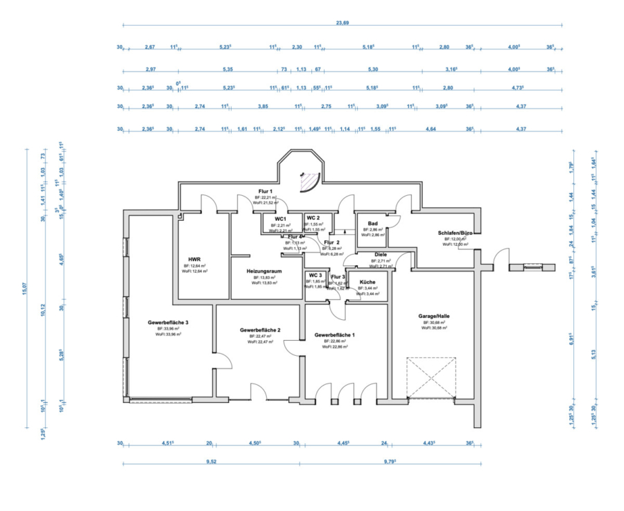 • Zwei separate Eingänge für Wohnen und Gewerbe