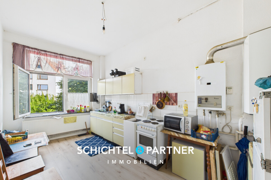 Helle, großzügige Räume mit durchdachten Grundrissen bieten vielfältige Modernisierungsmöglichkeiten, zeitgemäße Wohnkonzepte oder flexible Teilumbauten. Private Kellerräume gehören jeweils zur Wohnung und das Gewerbe verfügt ebenfalls über einen Teil des Kellers.
