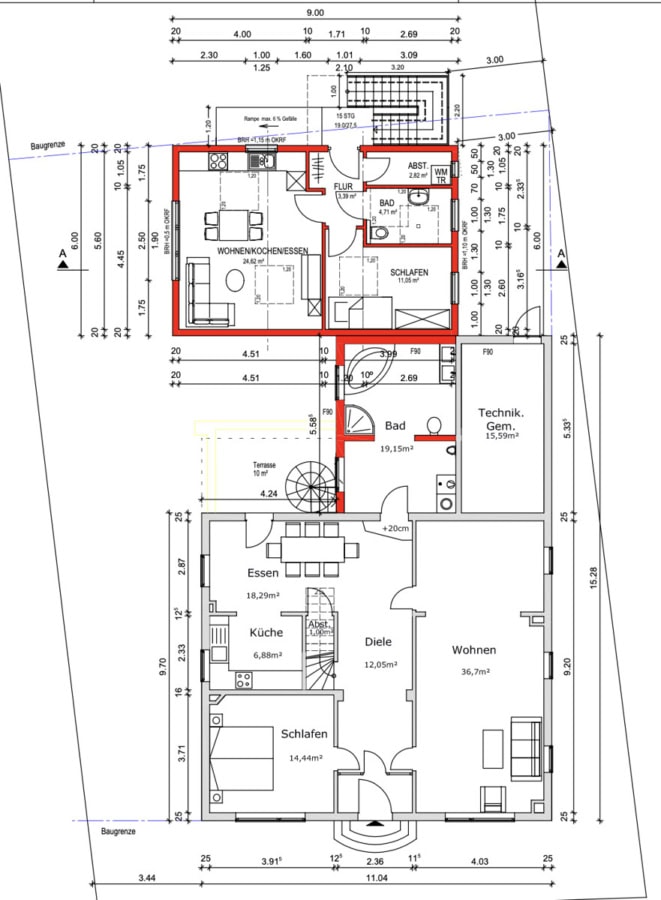 - Bestandswohnfläche: Erdgeschoss ca. 120 m², Obergeschoss ca. 80 m²