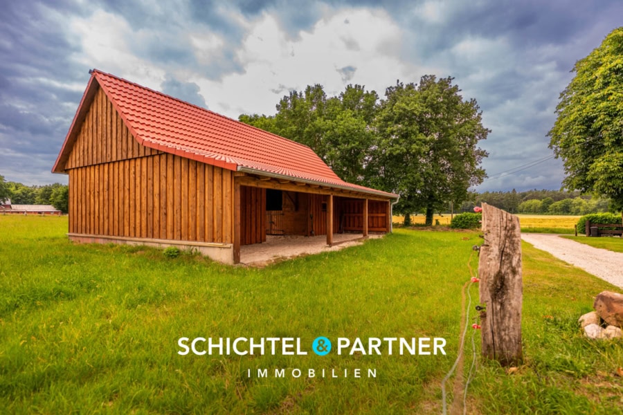 Ein neuer, noch unbenutzter Pferdestall aus dem Jahr ca. 2023 ermöglicht die Haltung von Pferden und macht das Anwesen auch für Tierliebhaber perfekt geeignet. Für Freizeitaktivitäten im Freien stehen großzügige Flächen zur Verfügung, auf denen sich Kinder nach Herzenslust austoben können oder Sie Ihren Garten ganz nach Ihren Vorstellungen gestalten können.