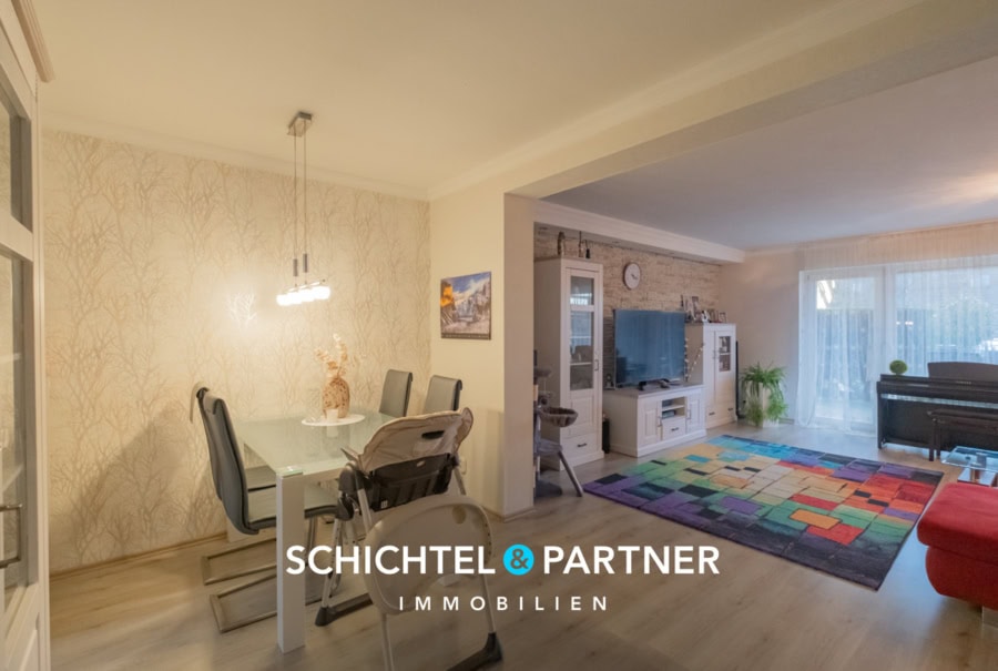 Der fließende Übergang zwischen Ess- und Wohnbereich sorgt für eine angenehme Offenheit im Erdgeschoss.
