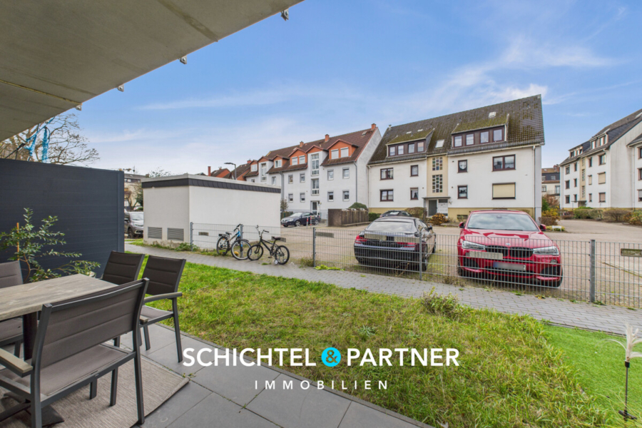 - Terrasse und ein kleiner Garten hinter dem Haus