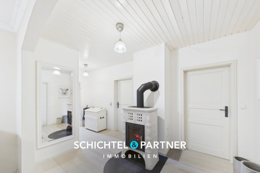 Das Haupthaus, ursprünglich im Jahr 1902 erbaut und seit 2014 fortlaufend renoviert, bietet rund 239 m² Wohnfläche auf einer Ebene. Das massive Mauerwerk wurde bereits in den 1970er-Jahren neu verklinkert, die Dacheindeckung mit Tonpfannen sowie eine nachträgliche Dämmung der Geschossdecke mit 20 cm Isolierung sorgen für solide Bausubstanz und zeitgemäße Energieeffizienz. Der Innenbereich präsentiert sich mit Massivholztüren in Altweiß, teilweise neu aufgebauten Böden mit Schaumglasschotter, Blähglas und Fermacell, komplett erneuerter Elektrik, Gasheizung von 2019 sowie erneuerten Wasser- und Abwasserleitungen.