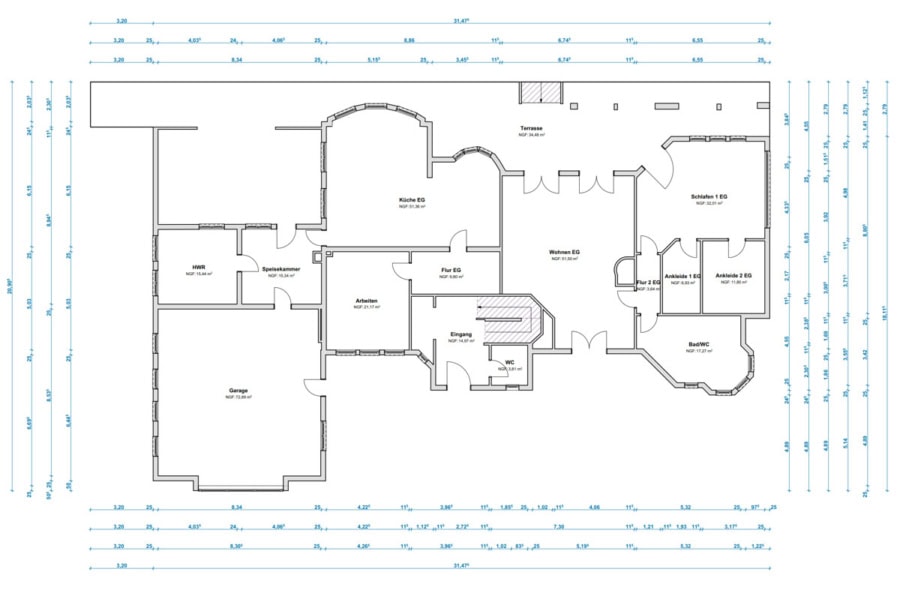 - Smart Home durch KNX und Gira inklusive 5-adriger Elektrik