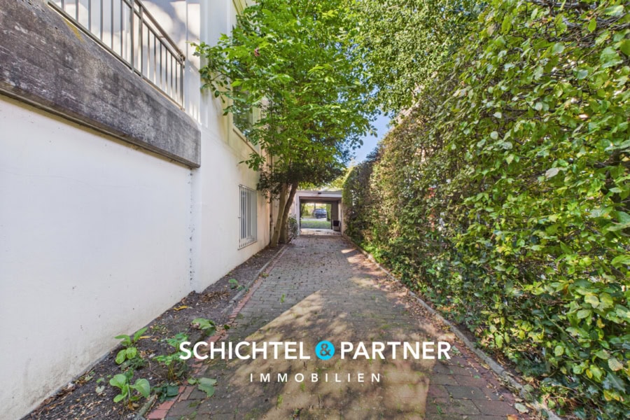 - Lange Einfahrt mit mehreren Stellplätzen