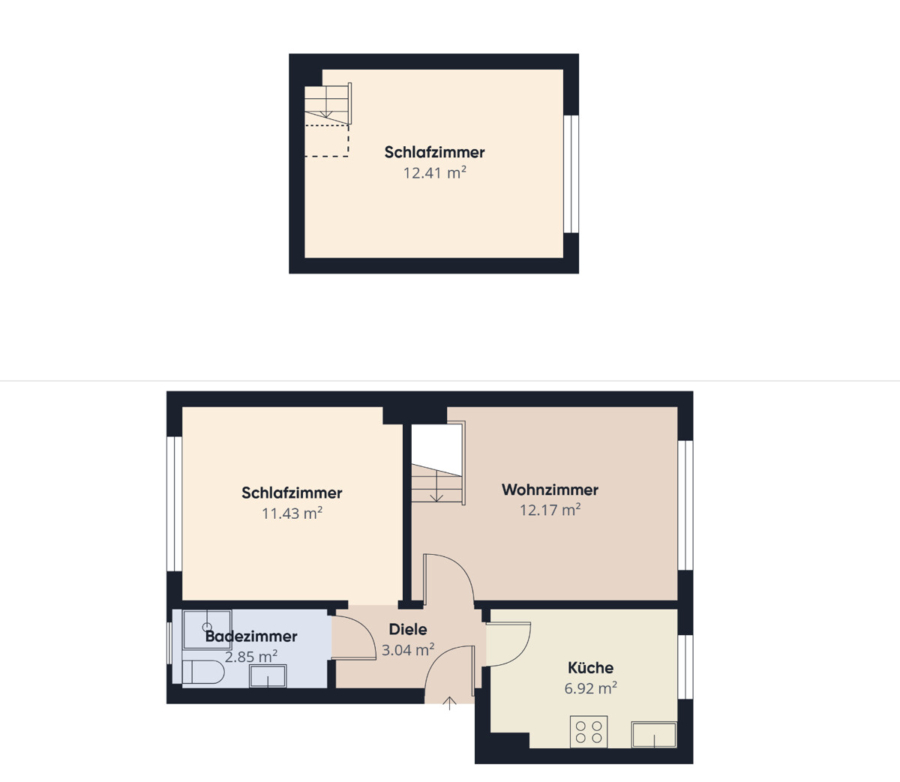 Was macht eine Maisonettewohnung eigentlich so besonders? Vor allem die klare Aufteilung auf zwei Ebenen. Wohnen, Schlafen und Rückzug lassen sich räumlich angenehm voneinander trennen, auch auf kompakter Fläche. Genau dieses durchdachte Raumgefühl prägt diese charmante Drei-Zimmer-Maisonettewohnung.