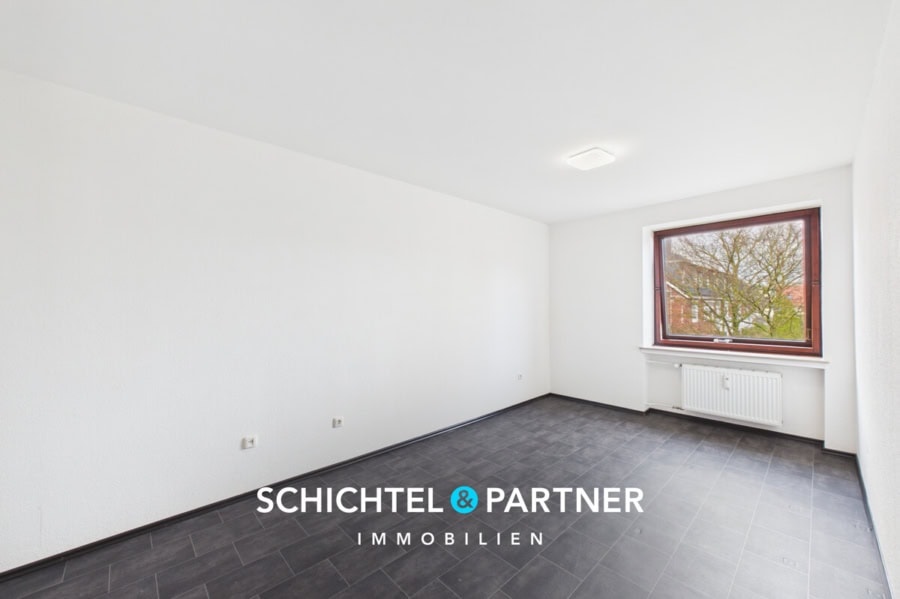 Das Schlafzimmer überzeugt durch einen idealen Schnitt, der vielfältige Einrichtungsmöglichkeiten ermöglicht. Ausreichend Platz für ein großes Bett sowie zusätzliche Möbel schafft ein komfortables Wohngefühl und macht den Raum zu einem angenehmen Rückzugsort.